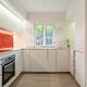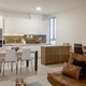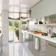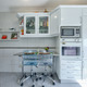 Cozinha em carvalho substituída por termolaminado branco, removendo parede de separação entre cozinha e sala.